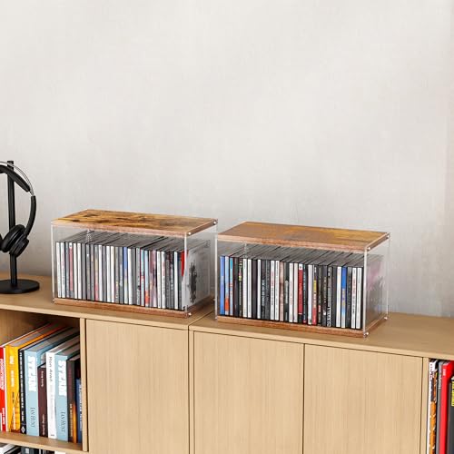 ihomecookerの木製アクリルCDホルダーは、最大60枚のCDを収納可能で、積重ね可能なデザインでデスクを整理。映画やゲームのコレクションに最適です。