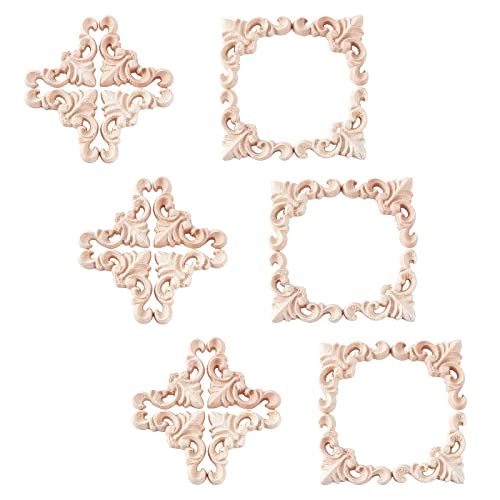 SUPERFINDINGS バリウッドの24ピースのミニ木彫りアップリケは、4x4x0.7cmのデイジーパターン三角形デザインで、無塗装の欧風装飾に最適です。ドアや壁、窓用のインテリアデコ素材としてDIYに利用できます。