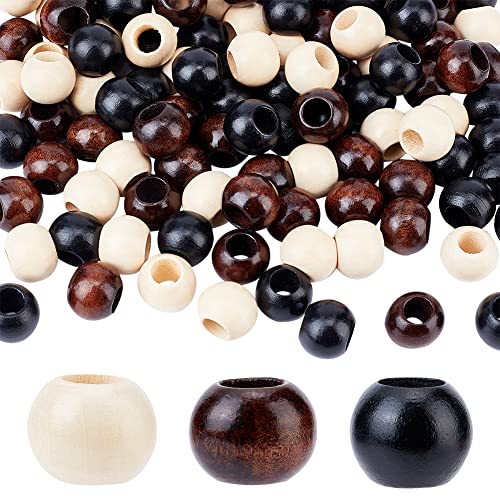 OLYCRAFTの120個入り天然木製ビーズは、3色の大穴ウッドビーズで、ラウンドと樽形のデザイン。アクセサリーやクラフトに最適なジュエリーパーツです。
