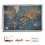 / コルクピンボード付きキャンバス世界地図 – 英語のレタリング – すべての部屋の装飾壁装飾 – 世界地図モチーフのキャンバス写真(70x50cm、パターン13)