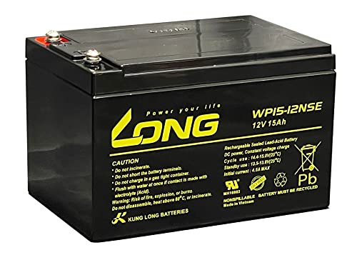 LONG 12V 15Ah 高性能シールドバッテリー WP15-12NSEは、高サイクル耐久性を持ち、電動バイクや電動リールに最適。充放電性能が強化され、高い蓄電容量を提供します。