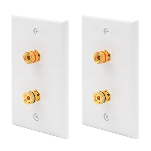 VCE UL規格認定スピーカーウォールプレート。金メッキの2ポートキーストーンウォールプレートで、バナナジャックバインディングポストを搭載。スピーカー用のインサートが2個パックで提供されます。