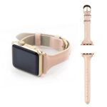 ウェアプラネットのApple Watch用エナメルレザーバンド(42/41/40/38mm対応)。細身のスリムデザインで、シリーズ10-1やSEに適合。カラーはティックルドピンク、国内正規品です。