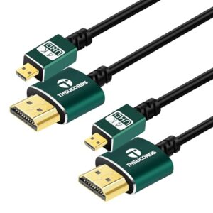Thsucords 薄型Micro HDMI – HDMIケーブル 1M 2本パック ウルトラスリム&フレキシブルソフトマイクロHDMI DタイプからHDMI Aタイプケーブル 3D/4K@60Hz/18gbps/2160P/1080P対応 GoPro Hero7/8/9 Raspberry Pi 4用