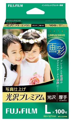 インクジェットペーパープリンター用紙 画彩 写真仕上げ 光沢プレミアムは、厚手の光沢紙で、印画紙ベース。Lサイズ、100枚入りで、鮮やかな写真印刷が可能です。