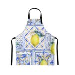 Y YIHANGBEST 水彩レモンサマーエプロンは、ポケット付きでフルーツデザインが魅力。イエローとブルーのプリントがキッチンを彩り、男女問わず使える仕様。サイズは27 x 31インチで、料理やサービスに最適。ギフトにもおすすめ!