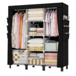 ジッパー付きポータブル衣装庫は、幅170cm、奥行き45cm、高さ172cmの簡易クローゼットです。4本の吊り棒と収納キャビネットを備え、大容量の収納スペースを提供します。