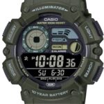 CASIOデジタル腕時計WS-1500H-3BVは、フィッシングデータとムーンデータ表示機能を搭載。ブラック反転液晶で、アーミーグリーンのデザインが特徴。海外モデルの並行輸入品です。