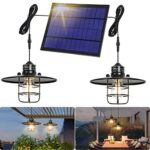 Depuley ソーラーライト 2灯は分離型ペンダントライトで、屋外使用に最適です。太陽光発電、光センサー付きで自動点灯/消灯し、IP65防水で安心。口金E26、LED電球付きで電気代不要。