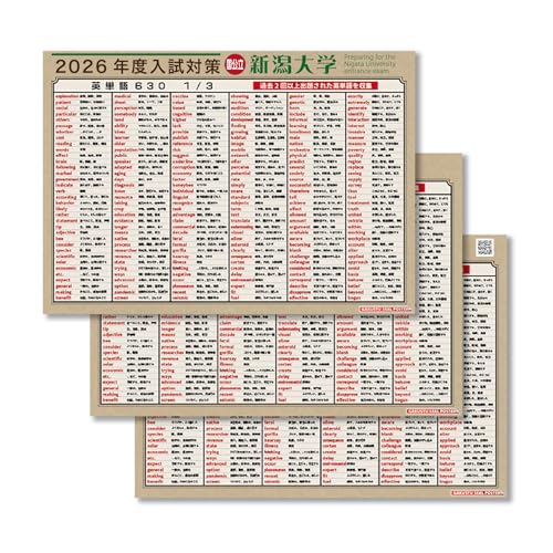新潟大学2026年度対応の英単語学習ポスター3枚セット。630個の頻出英単語をお風呂でも学べる防水仕様。入試対策に最適で、賃貸でも貼れるはがせるウォールステッカー。単語全リストプレゼント!