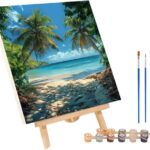 ペイントバイナンバー ビーチ 30x40cm。簡単なDIY数字油絵。付属品:ペイントブラシ、アクリル顔料。大人の趣味、ホームデコ、誕生日プレゼントに最適。