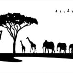 おしゃれなウォールステッカー(590×1327mm)。シール式で剥がしやすく、DIYやプチリフォームに最適。動物サファリのモノクロデザイン。賃貸でも安心な装飾アイテム。パーティーやイベントにもおすすめです。