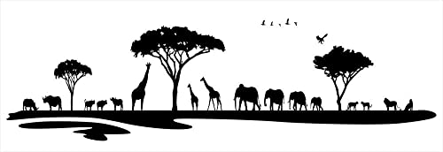 ウォールステッカー 390×877mm。シール式で、はがせるカッティングシート。おしゃれなモノクロの動物サファリデザイン。賃貸やDIYに最適。パーティーやイベントの飾りつけにも。
