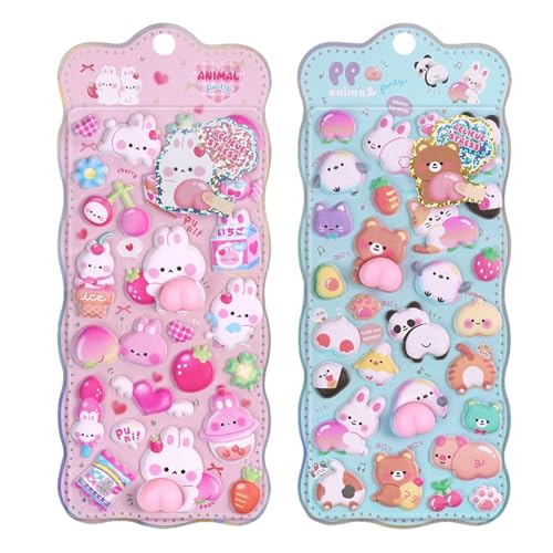 可愛い立体動物の3Dシール2個セット。ぷっくりとしたエポキシ樹脂製で、DIYや手帳、日記帳に最適。女の子にも男の子にもおすすめのご褒美や贈り物にぴったりな手芸用品です。サイズは23.5x10cm。