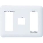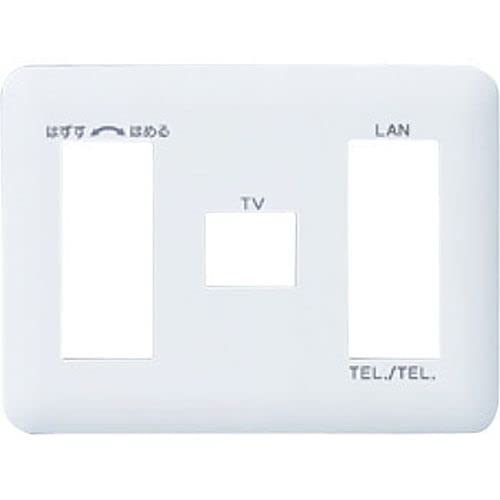 パナソニック コスモシリーズワイド21のマルチメディア表示コンセントプレート。7コ用で、3コ+1コ+3コの構成。TV、LAN、TEL.が利用可能。カラーはホワイトで、型番WTF70776Wです。