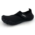 アモジのキッズマリンシューズ。男女兼用のウォーターシューズで、通気性に優れたメッシュ素材。川や海での使用に最適な水陸両用。夏のアクティビティにぴったりです。サイズは19cm、カラーはブラックです。