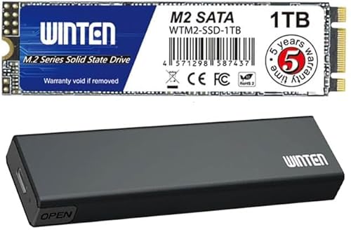 WINTEN SSD M.2 1TB外付けケースセットは、3D NANDフラッシュ搭載で省電力、衝撃に強く、エラー訂正機能も備えています。日本語マニュアル付きで5年保証。