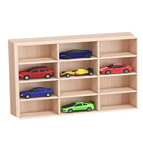 おもちゃの車やフィギュアを整理するための小型木製キャビネット。安定性が高く、寝室や店舗での収納に最適です。コレクターアイテムとしてもおすすめ。