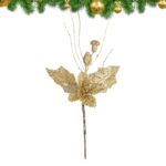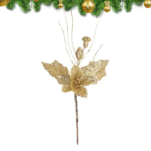 人工ゴールデンクリスマスブーケやセンターピース用の金の枝、松の人工クリスマス枝を使った小さなアレンジメント。屋内外の装飾に最適です。