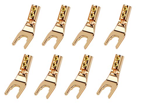 WYVERN AUDIOのHIFI銅製Yラグ端子は、4本または8本のセットで提供されるL型ソルダーレスプラグです。金メッキ仕上げで、ケーブル差込口径は4.2mmです。