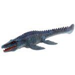 リアルなモササウルスフィギュア。全長約30cm、詳細なスケールモデル。高品質PVC素材使用、水中や陸上でのポーズが可能。コレクター向けにギフトボックス入り。
