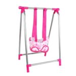 ピンク色のベビーカーと人形セット。3歳から5歳の女の子向けのごっこ遊びやままごとに最適。室内遊びや誕生日・クリスマスのギフトにおすすめ。