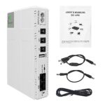 モデムやルーター用の10400Ah無停電電源装置。電源停止時にバックアップ供給、内蔵アダプターでスムーズに接続、カメラ監視システムにも対応。