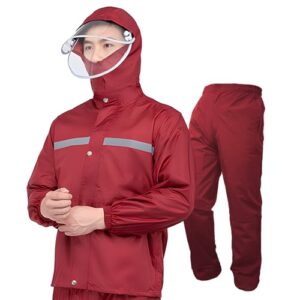 [三和雨] レインスーツ レディース メンズ レインウエア上下セット 【超防水 防風 透湿 安全反射シート 通気メッシュ】 ゴルフ レインコート 自転車 バイク用 レインジャケット 雨合羽 アウトドア 雨カッパ バイク 自転車 通学 通勤 釣り 雨具 梅雨対策 男女兼用 (レッド, 2XL)