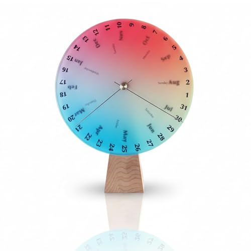 木製メープルウッドベースの永久回転デスクカレンダー。3層アクリルカラーで創造的なデスクトップ装飾に最適。手動時間表示機能付き。