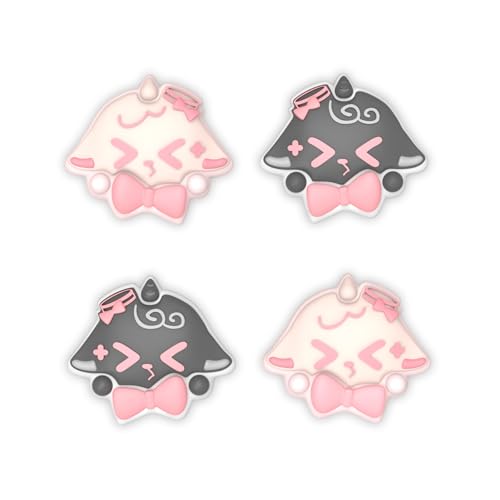 PlayVital Switch 2(2025年新モデル)対応 親指グリップキャップ 4個セット – かわいいシリコン製スティックカバー Joycon用 耐久性ある 【ふわリボンひつじ】
