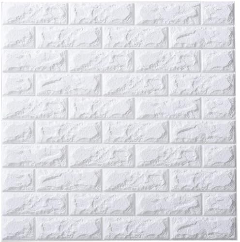 WANWEIの3D壁紙は、レンガデザインで防音・防水・断熱機能付き。自己粘着式のクッションシートで、DIY簡単。パールホワイトで、タイルシールとしても使用可能。12枚入。