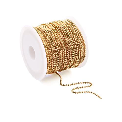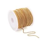 Beadthovenのゴールド鉄製ボールチェーンは、約10m/巻、1.5mmのサイズで、ネックレスやブレスレット、キーホルダーなどのDIYアクセサリーに最適です。ハンドメイドや手芸にぴったりなスプール付きの素材です。
