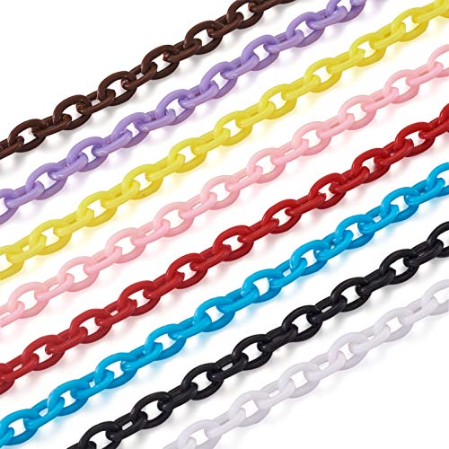 Beadthovenのプラスチックチェーンは10本入り、幅5.5~6mmの混合色のアズキチェーンです。38~39cmの長さで、色とりどりのデザインが特徴。ハンドメイドやDIYアクセサリー、ストラップ制作に最適なクラフト用品です。