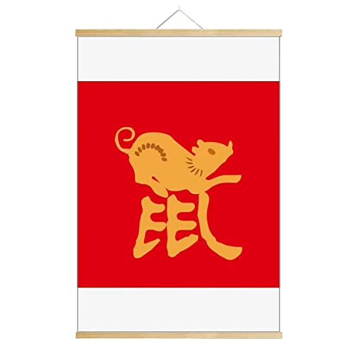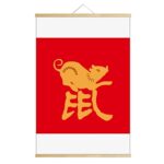 ゴールド中国語マウスアートフォントを使用したリール掛け油絵布装飾画。独特のデザインと華やかな色合いが魅力、部屋を明るく演出します。