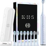 KHSソニック電動歯ブラシは大人向けで、5つのモードと8つの交換用ヘッド搭載。充電式でIPX7防水、2分タイマー、トラベルケース付き。色はパープルです。