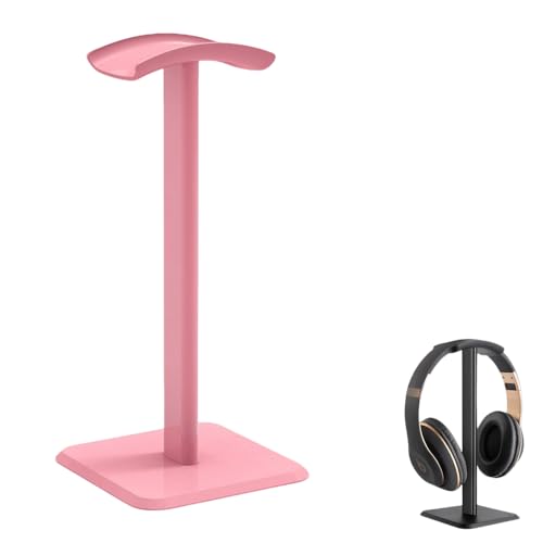 こちらのヘッドホンスタンドは、卓上に適したシンプルなデザインで、滑り止め機能付きのアルミ合金製。組み立ても簡単で、サイズは23*10.5*10.5cm、ピンク色がおしゃれです。