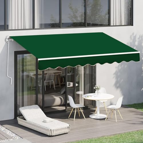 このオーニングテントは、紫外線UVカットや撥水機能を備えた伸縮手動式の日よけです。家庭用・商業用に最適で、サイズは2mx1.5m。グリーンカラーで遮光効果もあり、調節可能です。