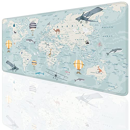 Smoaffly デスクパッドは、世界地図デザインでサイズ31.5×15.7インチ。滑り止めゴムベース、ステッチエッジでオフィスやゲームに最適。