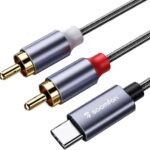 SOOMFONのUSB TYPE-C RCA変換ケーブル2Mは、DACチップ搭載の高耐久性ナイロン編みで、スマホ/iP15/スピーカーと接続可能。金メッキプラグで音質向上。