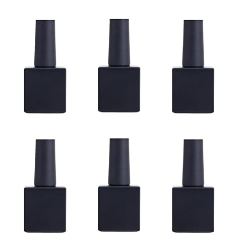 UPSTOREの6個パック10ml空ボトルは、ブラシ付きのマットブラックスクエアガラス製。詰め替え可能で、DIYネイルアートに最適なジェルネイルポリッシュストレージボトルです。