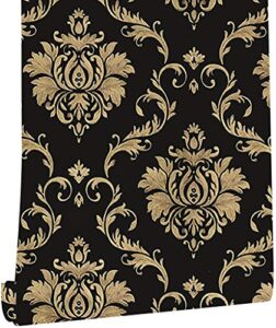 JLHOUSEのJLP1301-3 黒花柄 剥が せる 壁紙 はがせるシール ダマスク柄 (ダマスカス) 45cm×300cm 壁紙 生のり付き