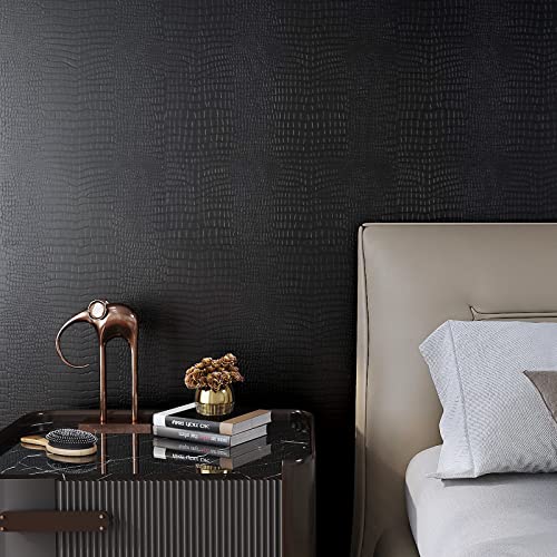 / VaryPaper リメイクシート 40cmx2m ブラック 黒 壁紙 クロコダイルテクスチャード レザー調 インテリア ビニールシート マスキングテープ 家具DIY リフォーム 壁保護シート 補修 防水シート 耐熱 クロス フェイクレザー 傷隠し オフィス 事務所 ビジネス風 革調 壁飾り