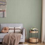 VaryPaperの壁紙リメイクシートは、くすみグリーンのリネン調で、40cmx2mのサイズ。剥がせるタイプで、貼りやすくDIYに最適。防水・防油で、キッチンやトイレ、リビングなど様々な場所で使用可能。賃貸でも安心して利用できます。