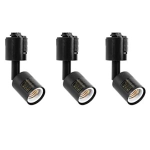 Pispoer ダクトレール用ライト、E26口金、電球なし、ライティングレール 照明、配線ダクトレール用器具、照射角度調節可能、黒い、3個セット。