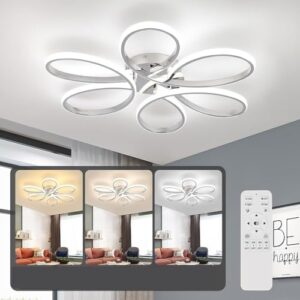 LED シーリングライト 8~16畳 おしゃれ 北欧照明器具 APP遠隔制御/リモコン 無段階調光調色 花の形 天井照明 間接照明 常夜灯 高輝度 インテリア ライト リビング 和室 洋室 寝室 台所 洗面所 省エネ 節電 日本語説明書付 (75*75cm 8-18畳, シルバー枠)