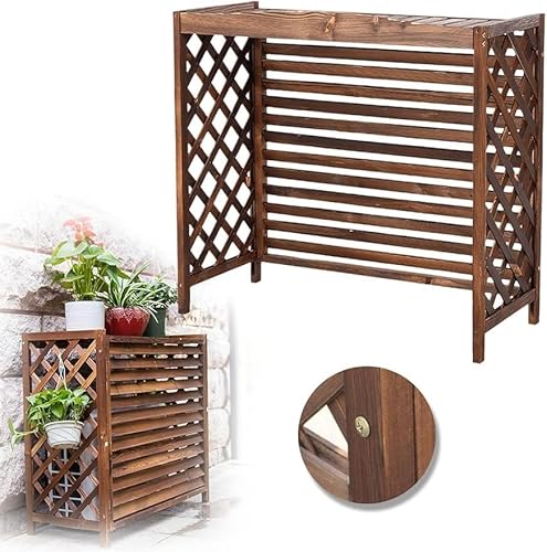 特大ジャンボタイプのブラウンエアコン室外機カバー。防水仕様で木製、エアコンフェンスや日除けとしても使える。サイズは95x40x89cmで、ベランダやバルコニーに最適。