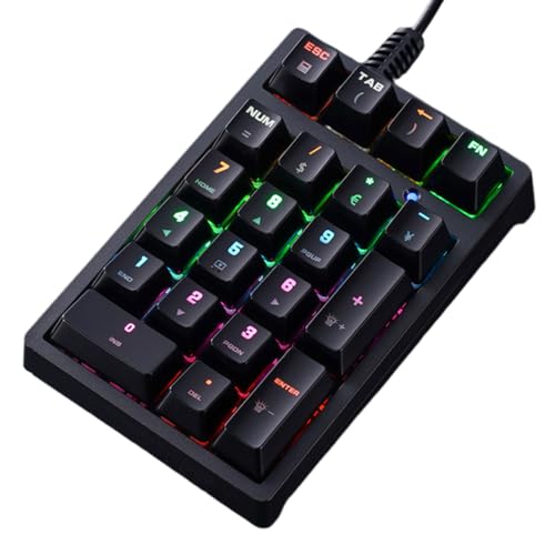 BRIMFORDのメカニカルテンキーは、青軸仕様でUSB有線接続。9種のバックライト、21キー、Tabキー付きで、ABSレーザー彫刻キーキャップを採用。デスクトップやノートPCに最適。