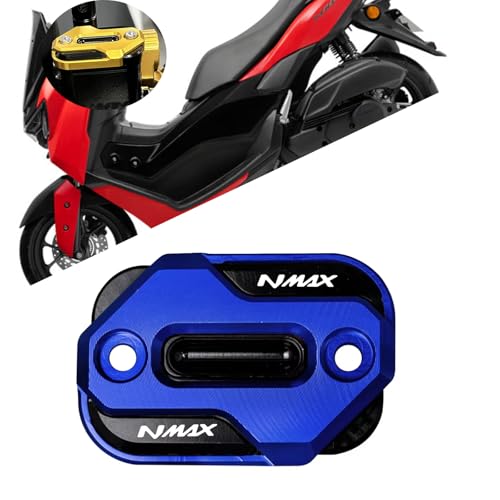 XIAXIA製のフロントブレーキリザーバー用カバー。NMAX155/125/150(2022-2026)対応。CNC加工の高品質アクセサリーで、ブルー色。オイルカップキャップとマスターシリンダーキャップ付き。