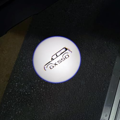 レクサスGX550 (J250) 2024年モデル向けのLEDロゴ投影カーテシライト2個セット。ドアを開けるとロゴが地面に投影される便利なアイテムで、取り付け工具も付属。