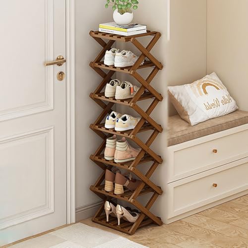 XINYINLWのスリムシューズラックは、組立不要で完成品。竹製でコンパクトな7段収納、折畳式で省スペース。玄関やベランダに最適な靴箱です。